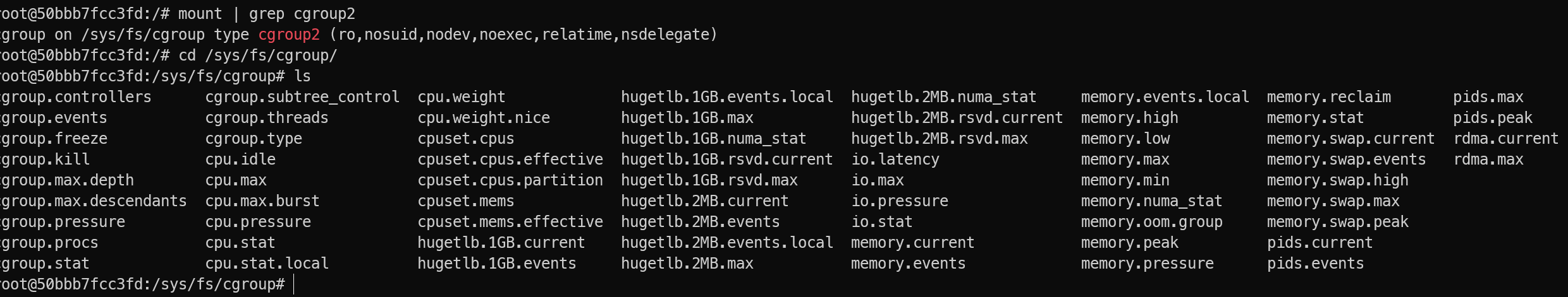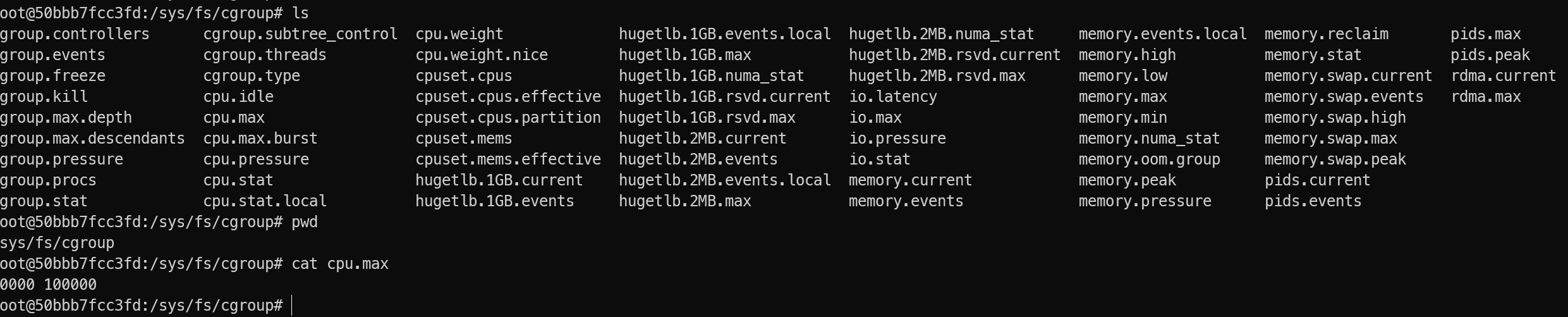 $ CG=/sys/fs/cgroup/demo-container