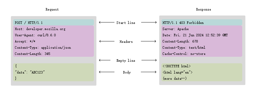 HTTP 消息的起始行和标头统称为请求的头部 Head,其后包含其内容的部分称为正文 Body