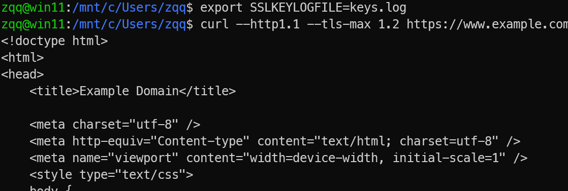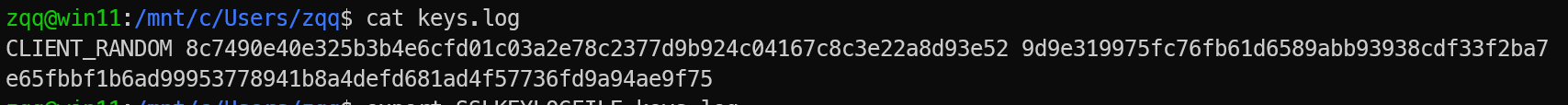 curl 编译层面包含了 OpenSSl,curl 的 SSL/TLS 功能由 OpenSSL 实现,OpenSSL 1.1.1+ 支持 SSLKEYLOGFILE 环境变量,设置这个环境变量就能把握手时派生出来的密钥写入这个文件里。