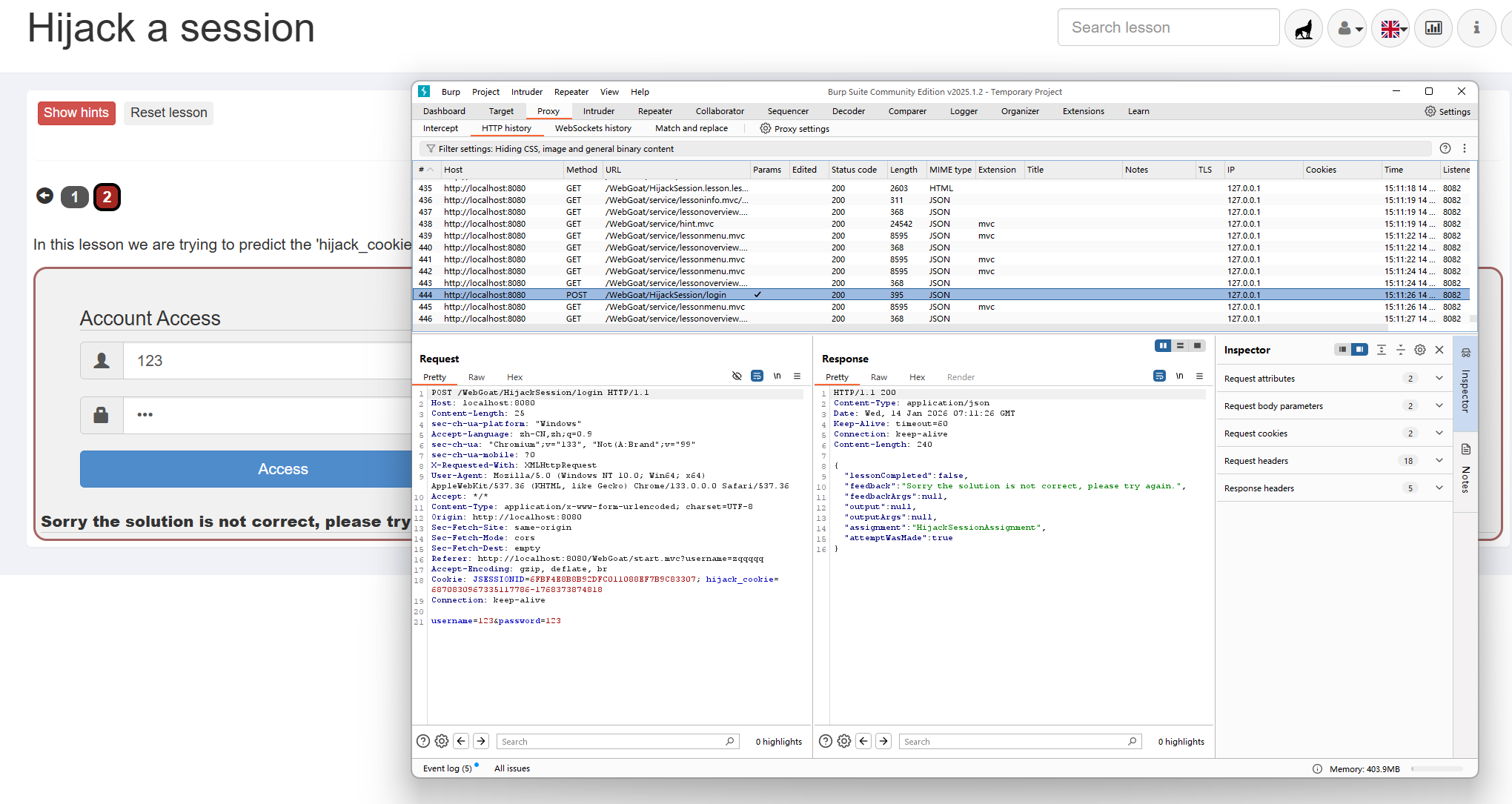这里发现9134839005677988101和9134839005677988100的时间戳是一样的,这是因为webgoat代码写的是生成hijack_cookie时会随机在生成一个给答案使用,但是正常思路还是如上