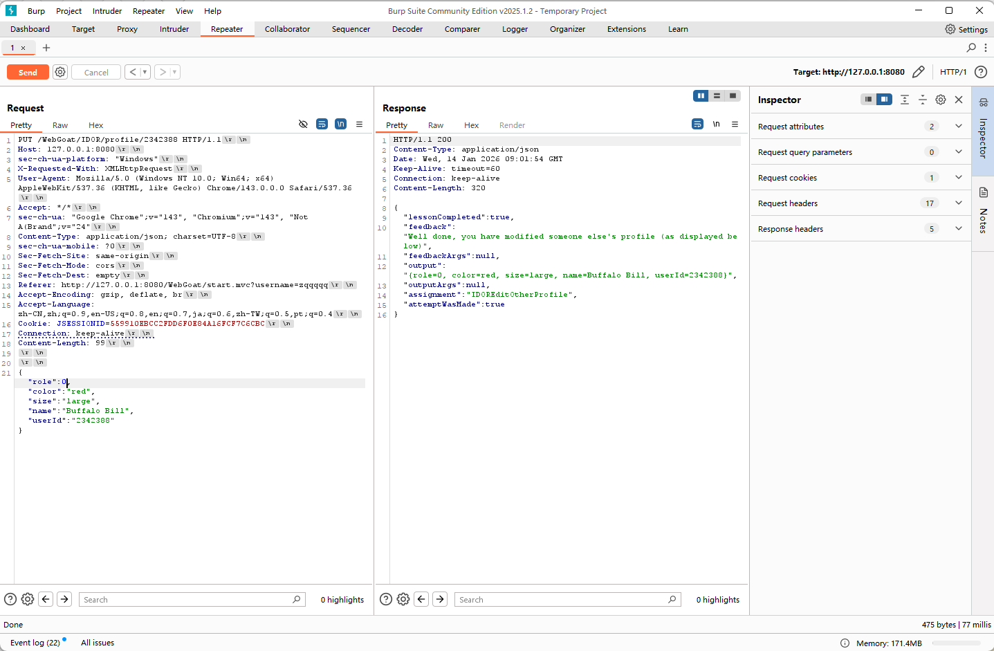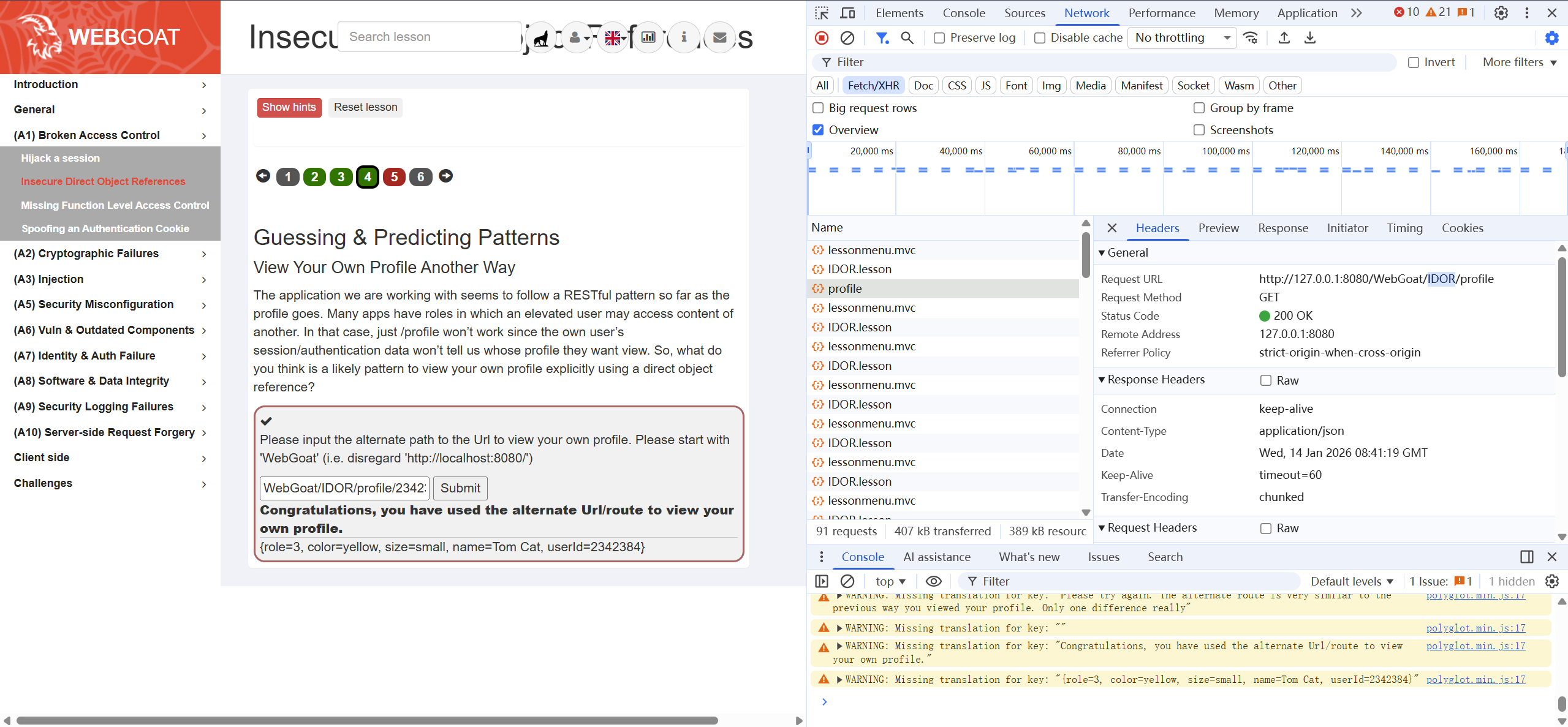 推测访问profile的REST API风格,为 WebGoat/IDOR/profile/2342384