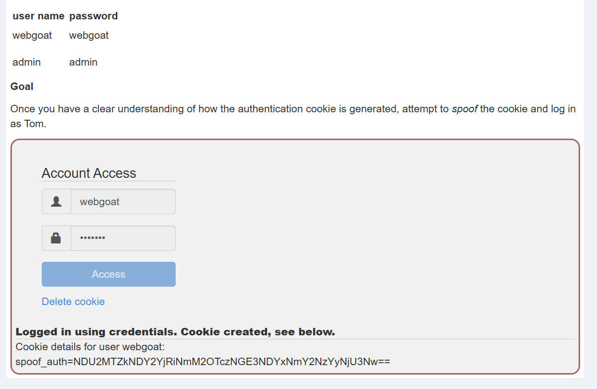 根据提示以admin/webgoat2个账号登录,得到以下cookie,发现cookie不会变,且base64编码有相同得前缀,长度似乎与用户名长度有关