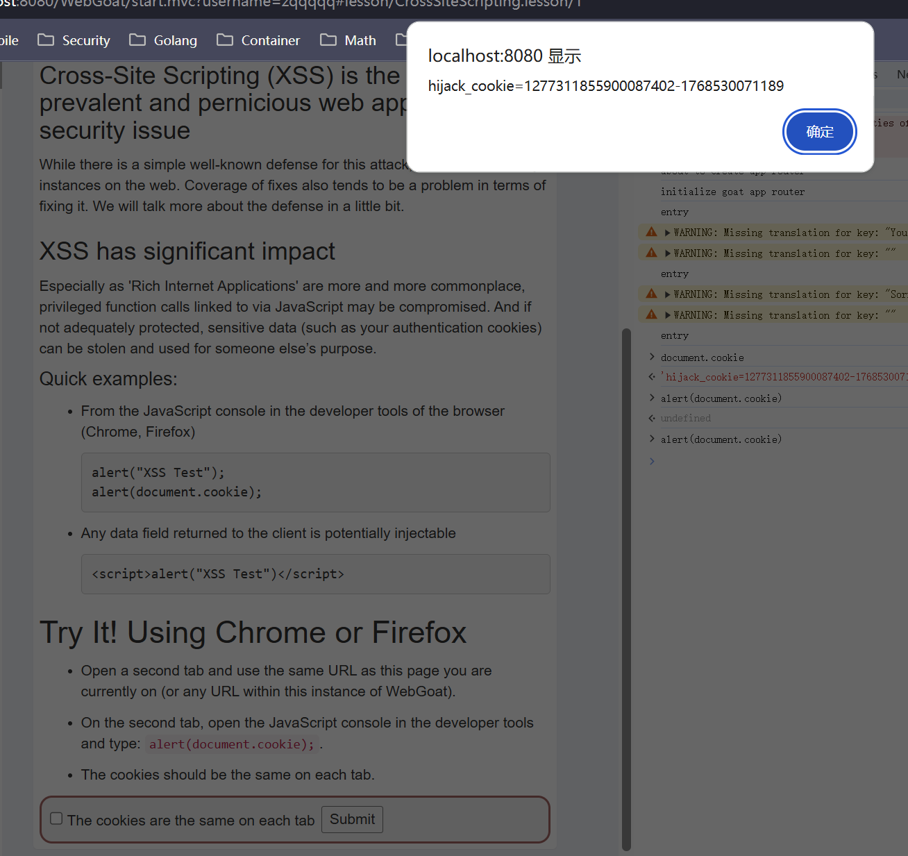 假设hijack_cookie存在,此cookie是非http-only的,才能通过js展示