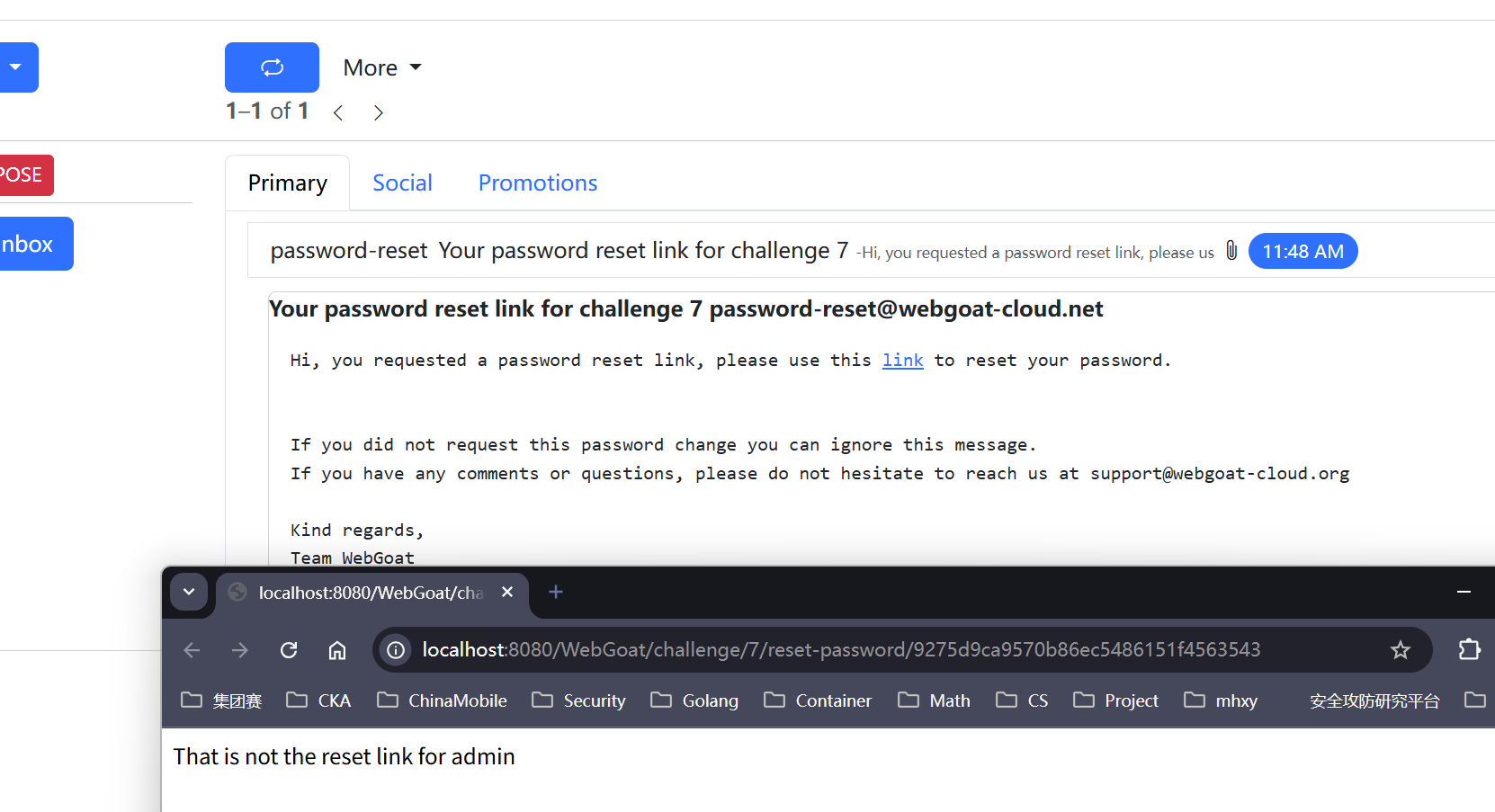 Generation password reset link for admin