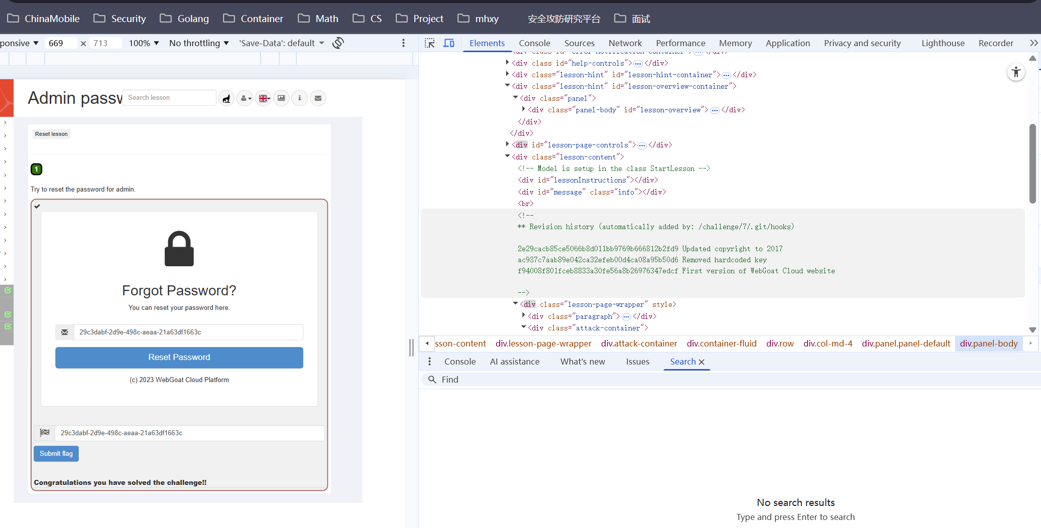 尝试checkout到最初的提交,能够找到最初硬编码的密钥,运行生成重置链接
